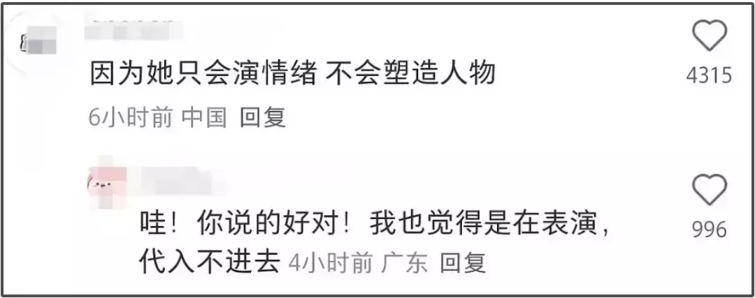 联想到李少红多年前针对杨幂演戏的评价,甚至觉得杨幂连进步都很有限,38岁了不还是“快乐哈哈哈,痛苦哇哇哇”吗?最多就进步在会过过脑子了,但也就仅限于过一过。